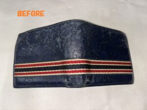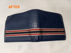 財布修理 GUCCIグッチ 二つ折り財布 スレ補修 お色の剥がれの補修 染め直し