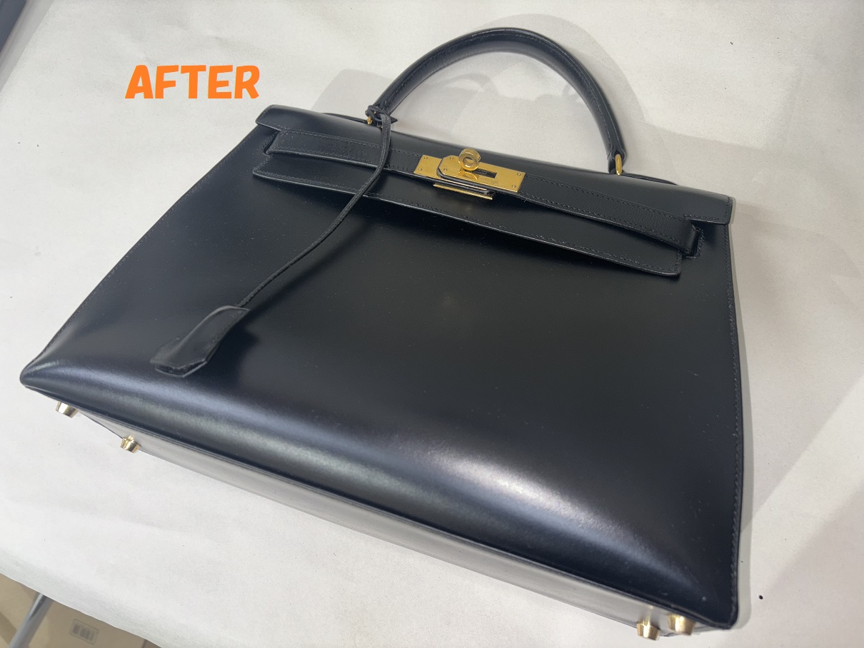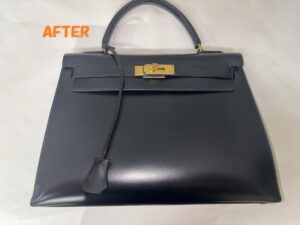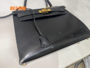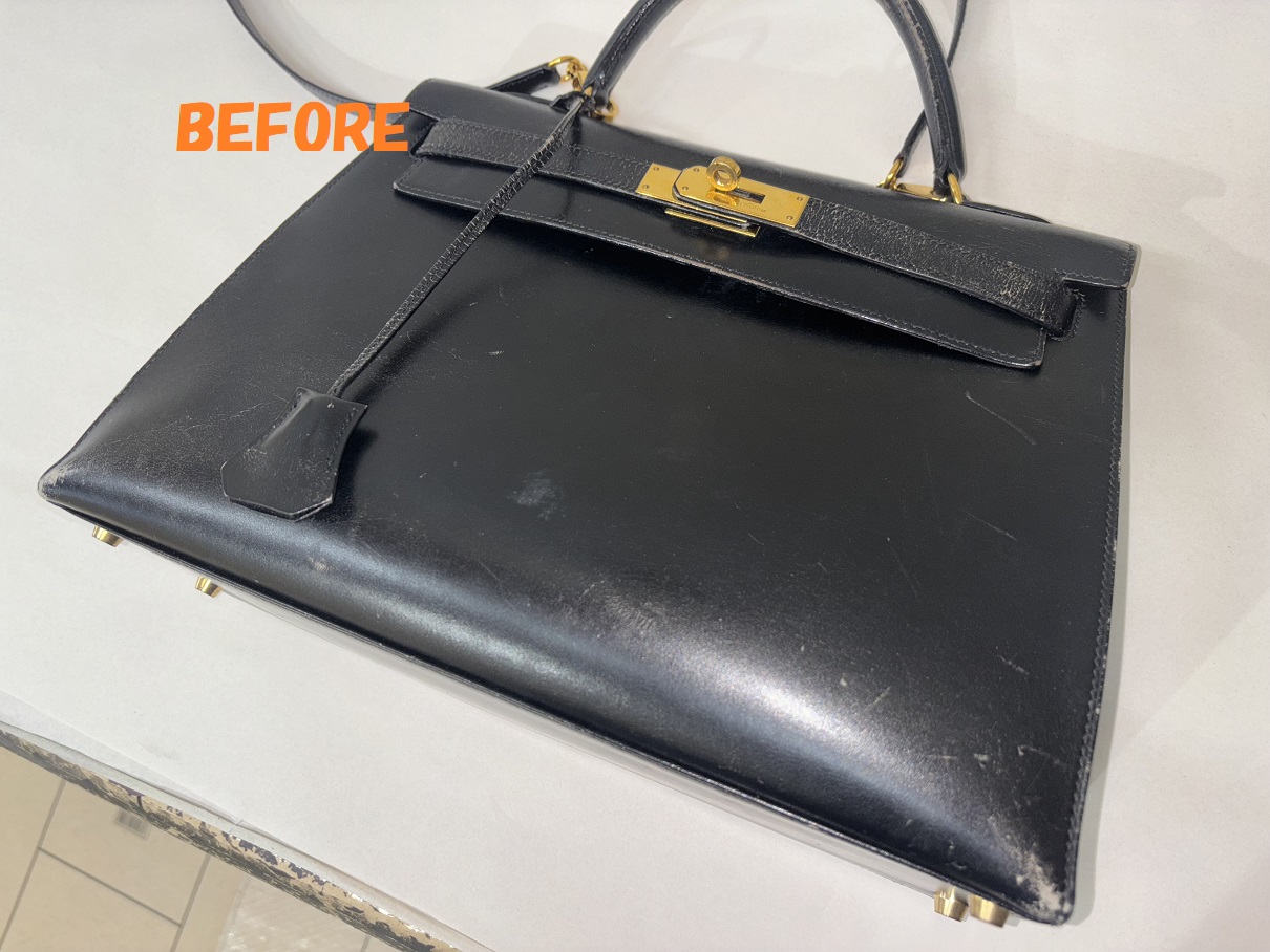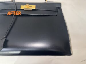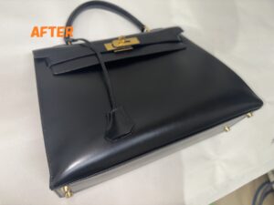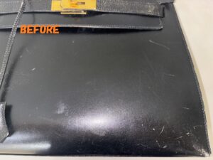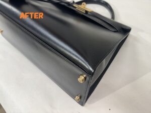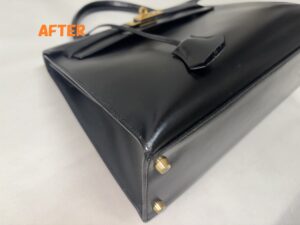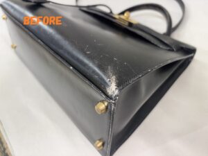 カバン修理 HERMESエルメス ケリーバッグ 角スレ補修 ひっかき傷の補修 染め直し
