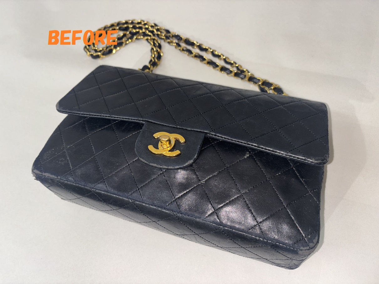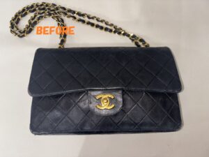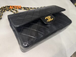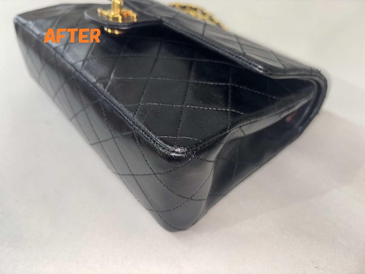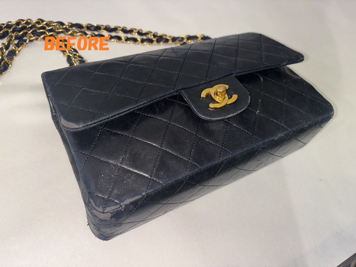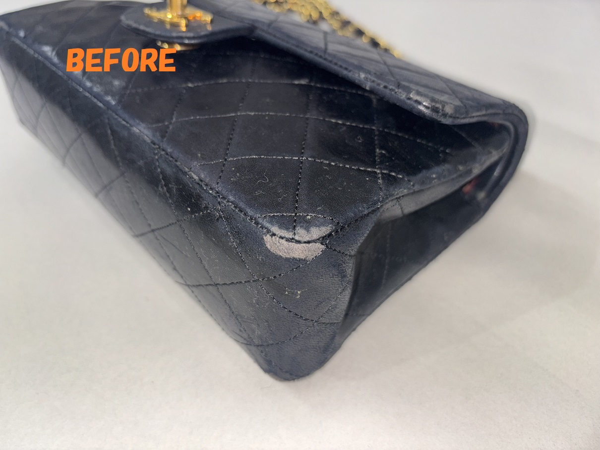カバン修理 CHANELシャネルのマトラッセ ラムスキンのバッグのスレ補修、染め直し