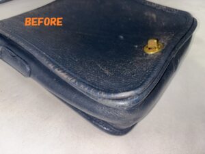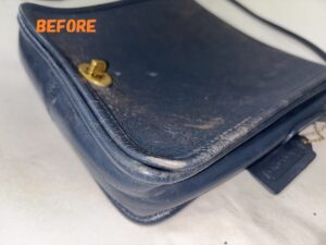 さて、今回ご依頼を頂きましたのは、COACHコーチのレディースショルダーバッグになります。オールドコーチと呼ばれるもので、最近のCOACHコーチとは少し違ってシンプルなデザインですね(^^)こちらのショルダーバッグなのですが、角部分や蓋のフチの部分などがこすれてしまってお色が剥がれてしまっていました(^^)また本体にも劣化がみられて少し塗料が剥がれたような感じになってしまいました。こちらのバッグを一度キレイにしてほしいという事で、ご来店をしていただけました。