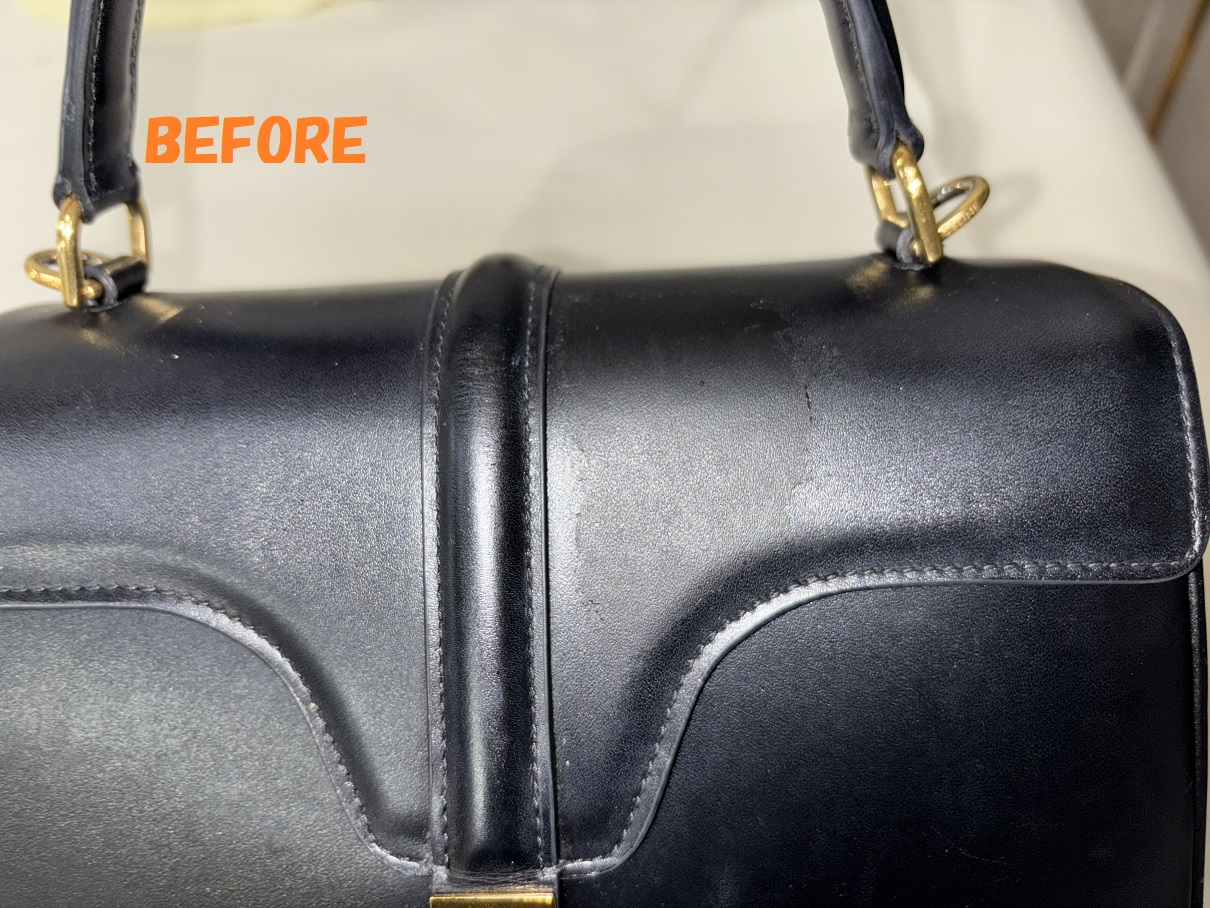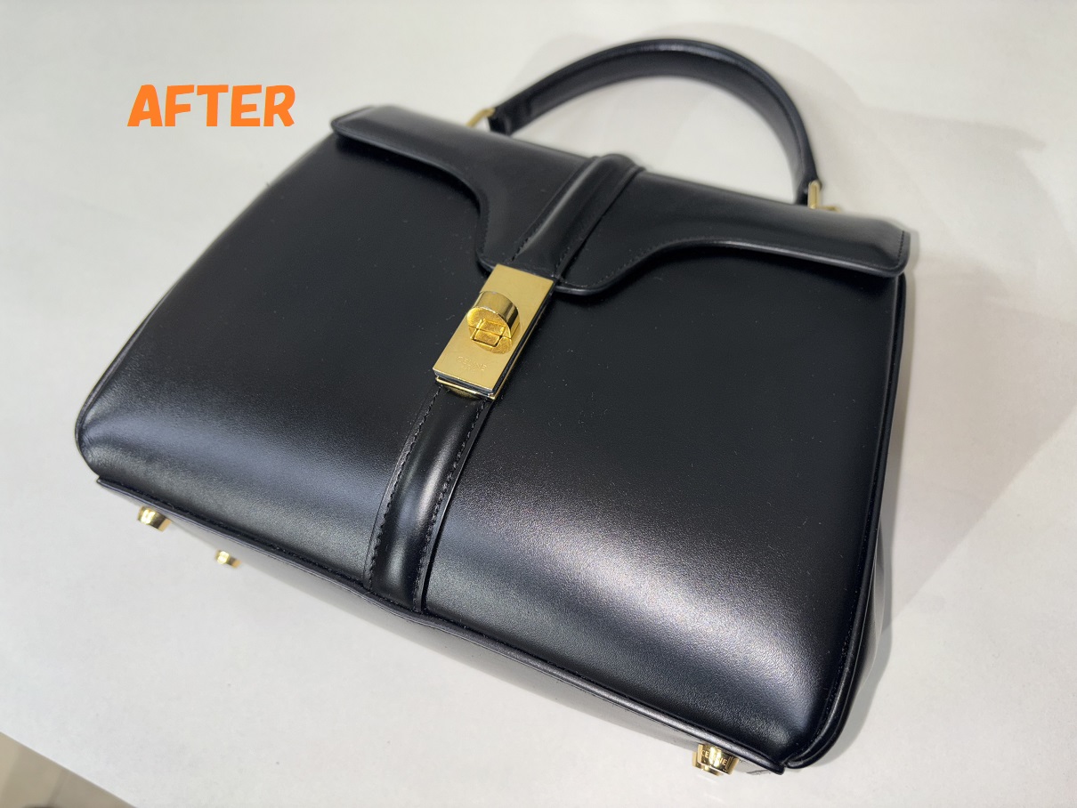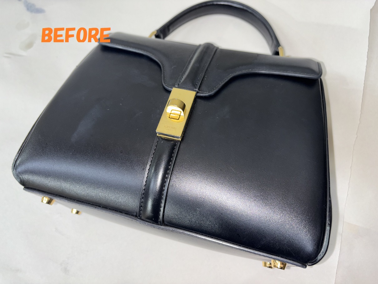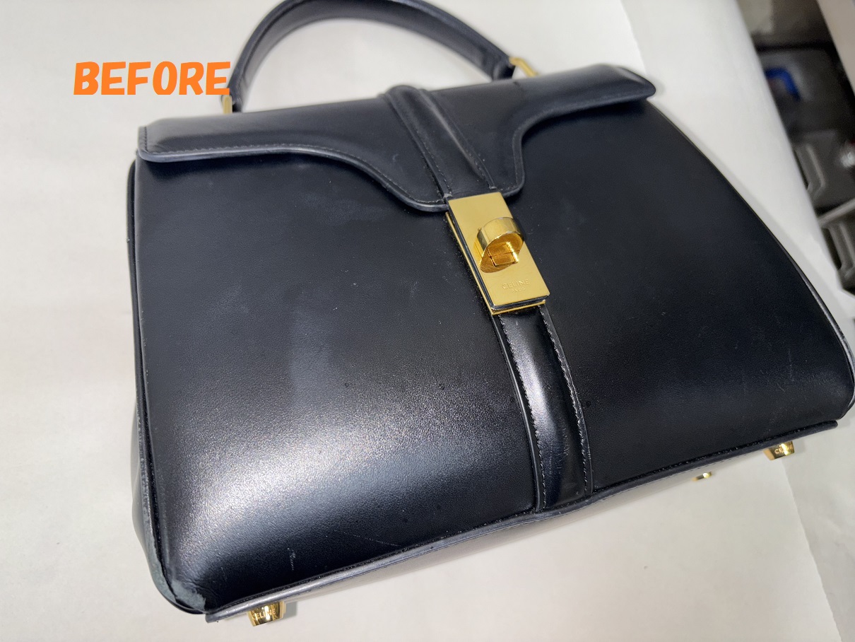 CELINEセリーヌのハンドバッグの角スレの補修、色あせの補修、お色の剥がれの補修、全体の染め直しのご依頼を頂きましたので、ご紹介させていただきます~!!