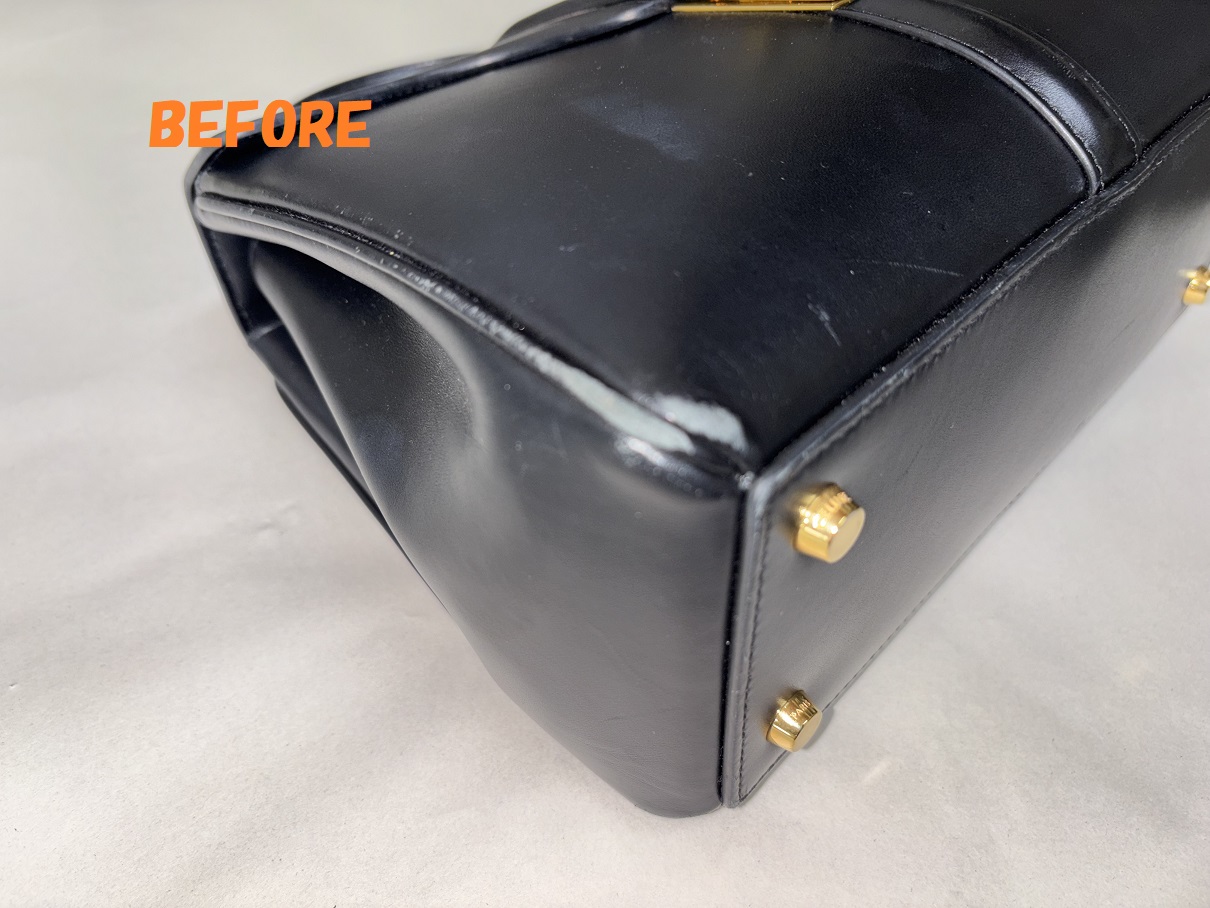 カバン修理 CELINEセリーヌ レディースバッグ 角スレの補修 色あせ お色の剥がれの補修
