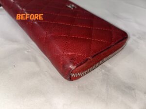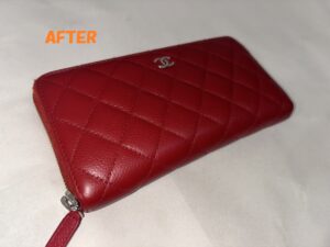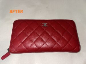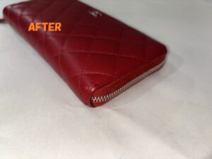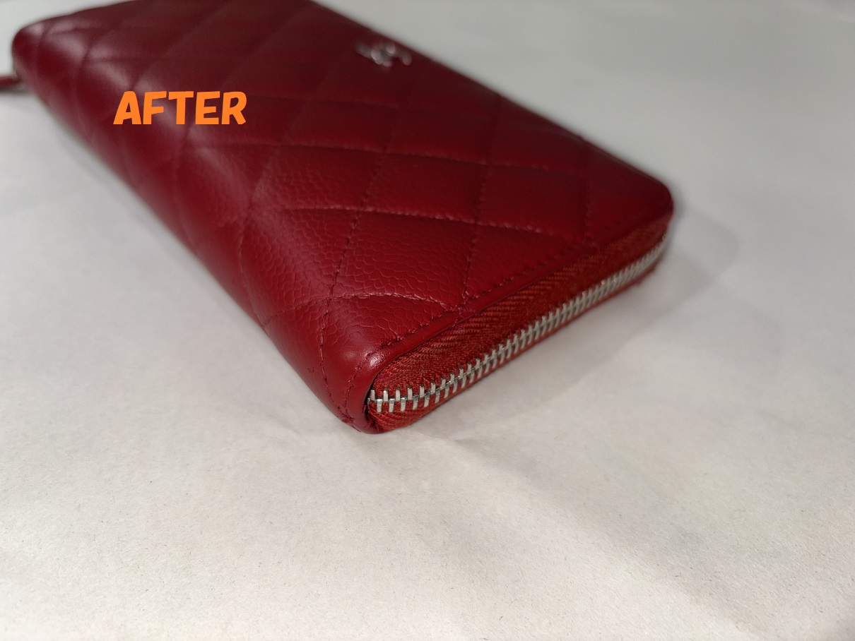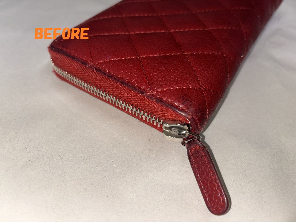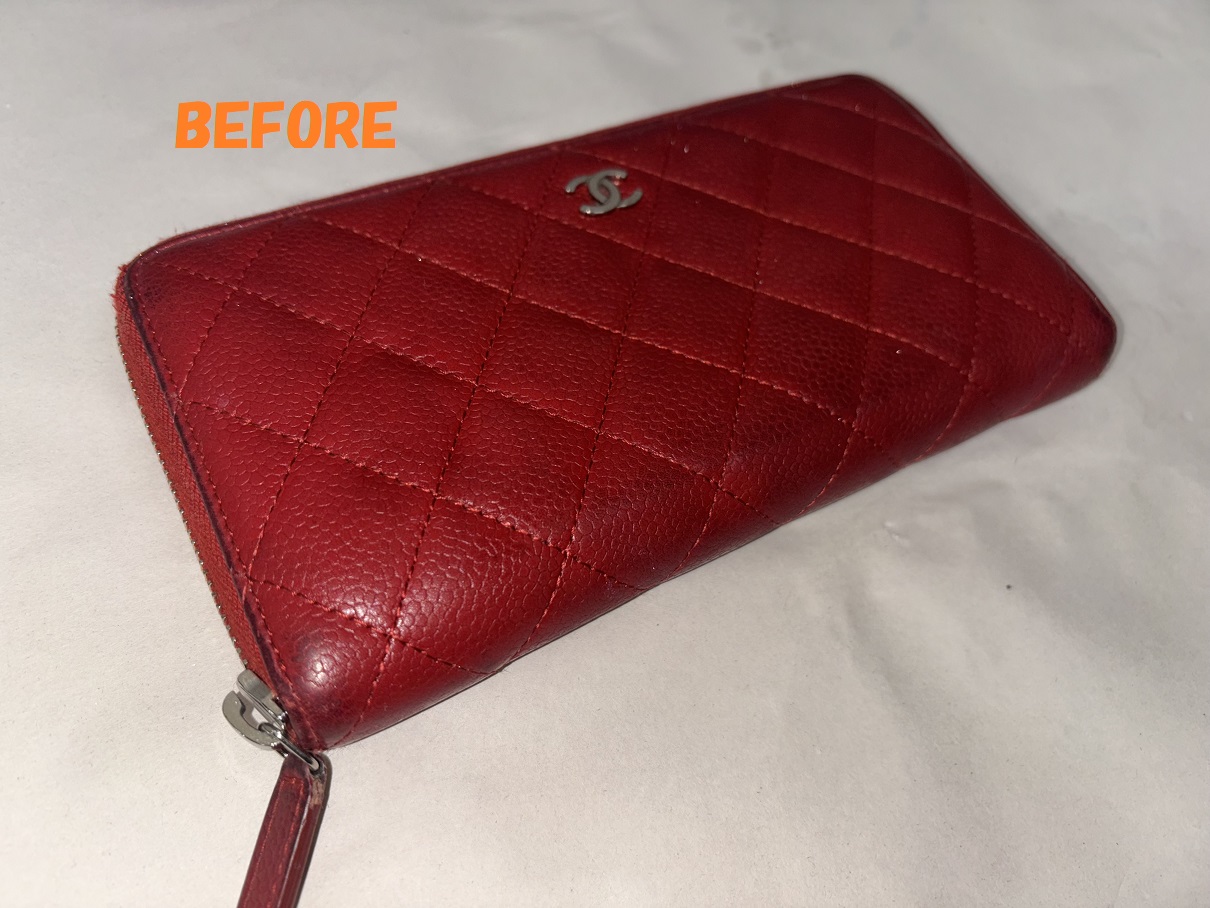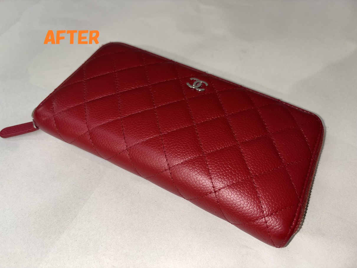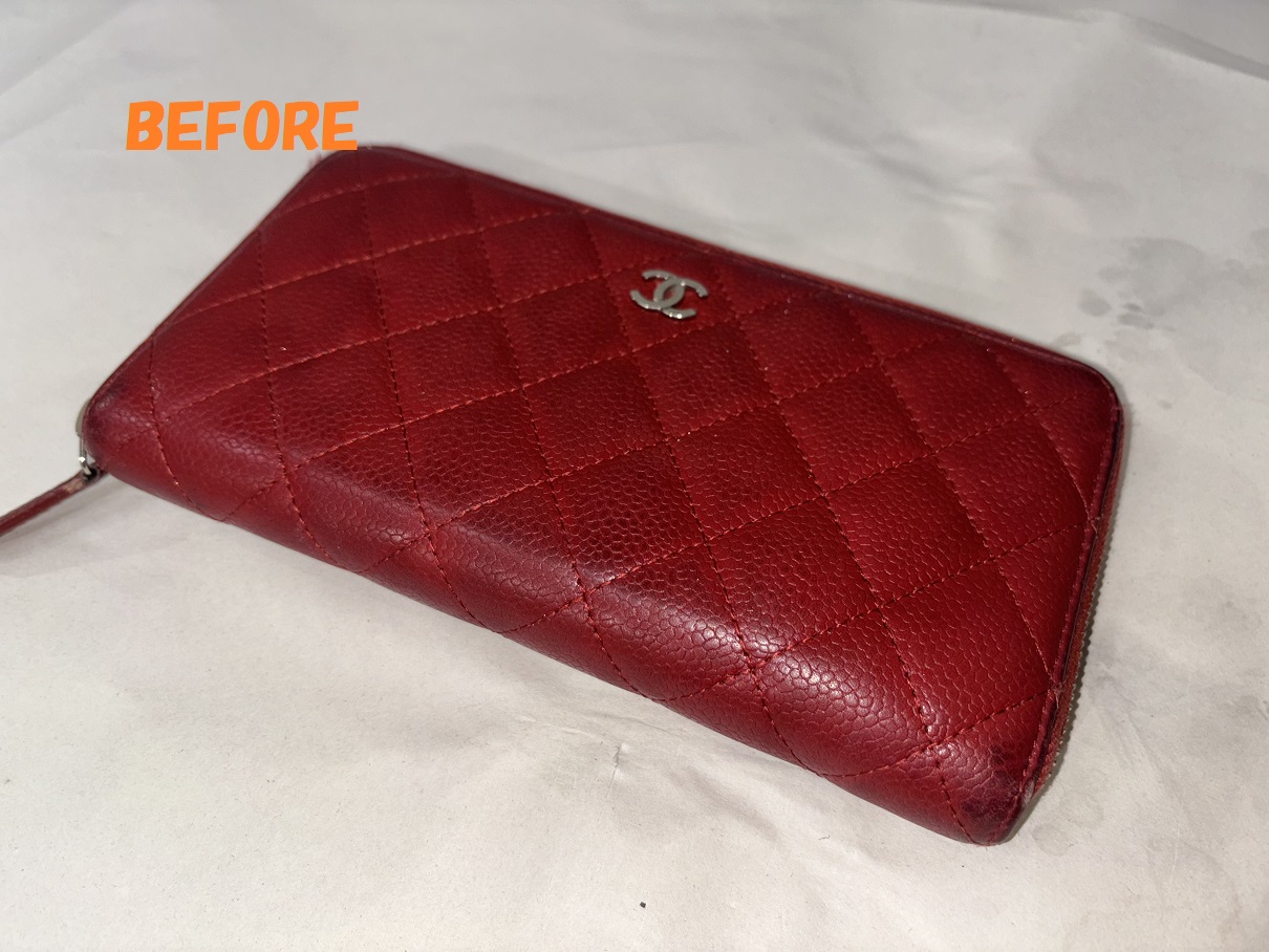 財布修理 CHANELシャネル キャビアスキン 長財布 黒ずみ補修 染め直し