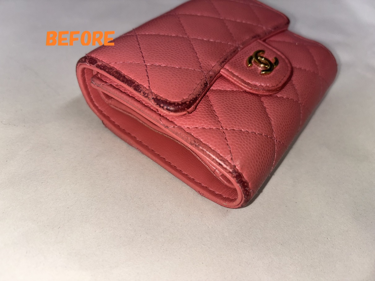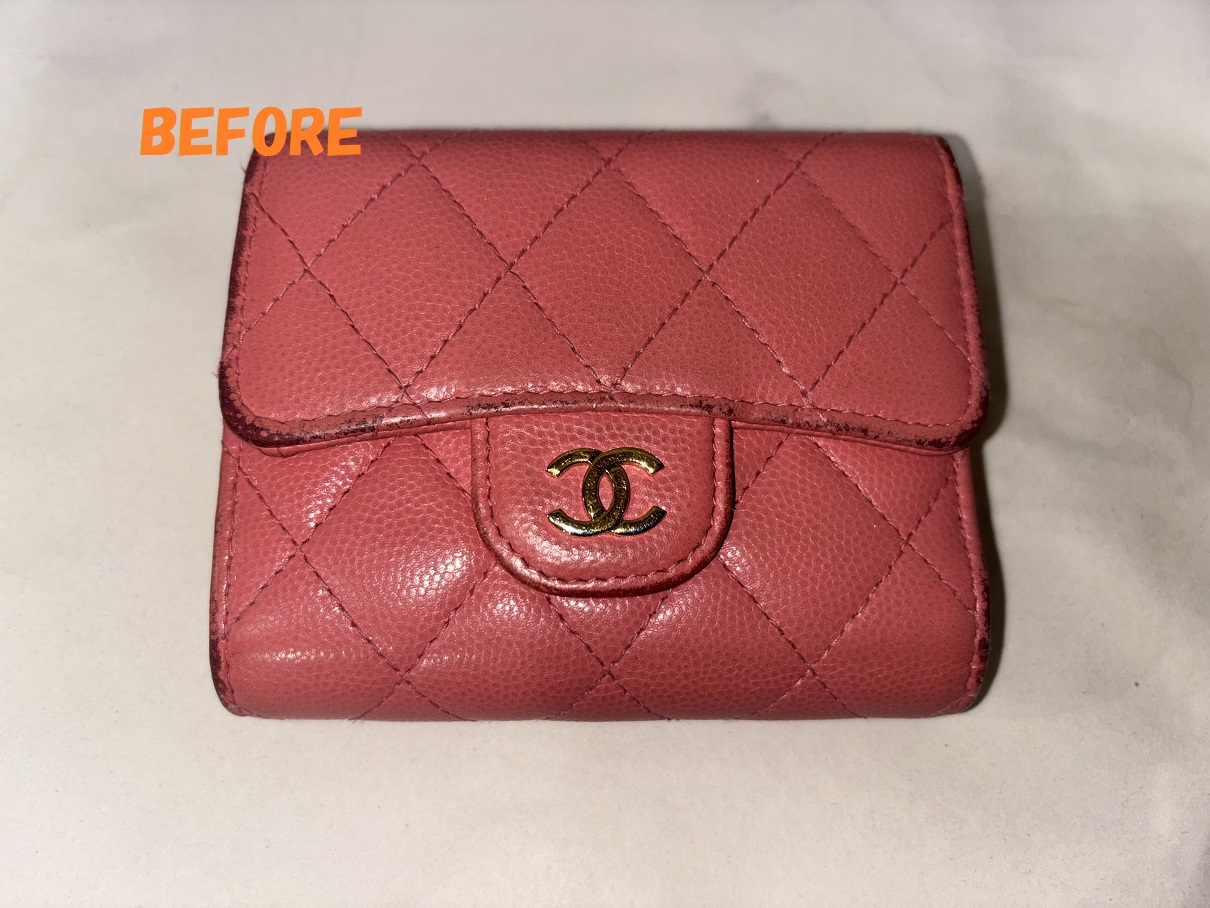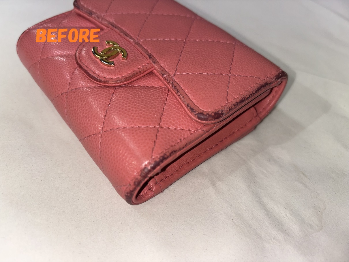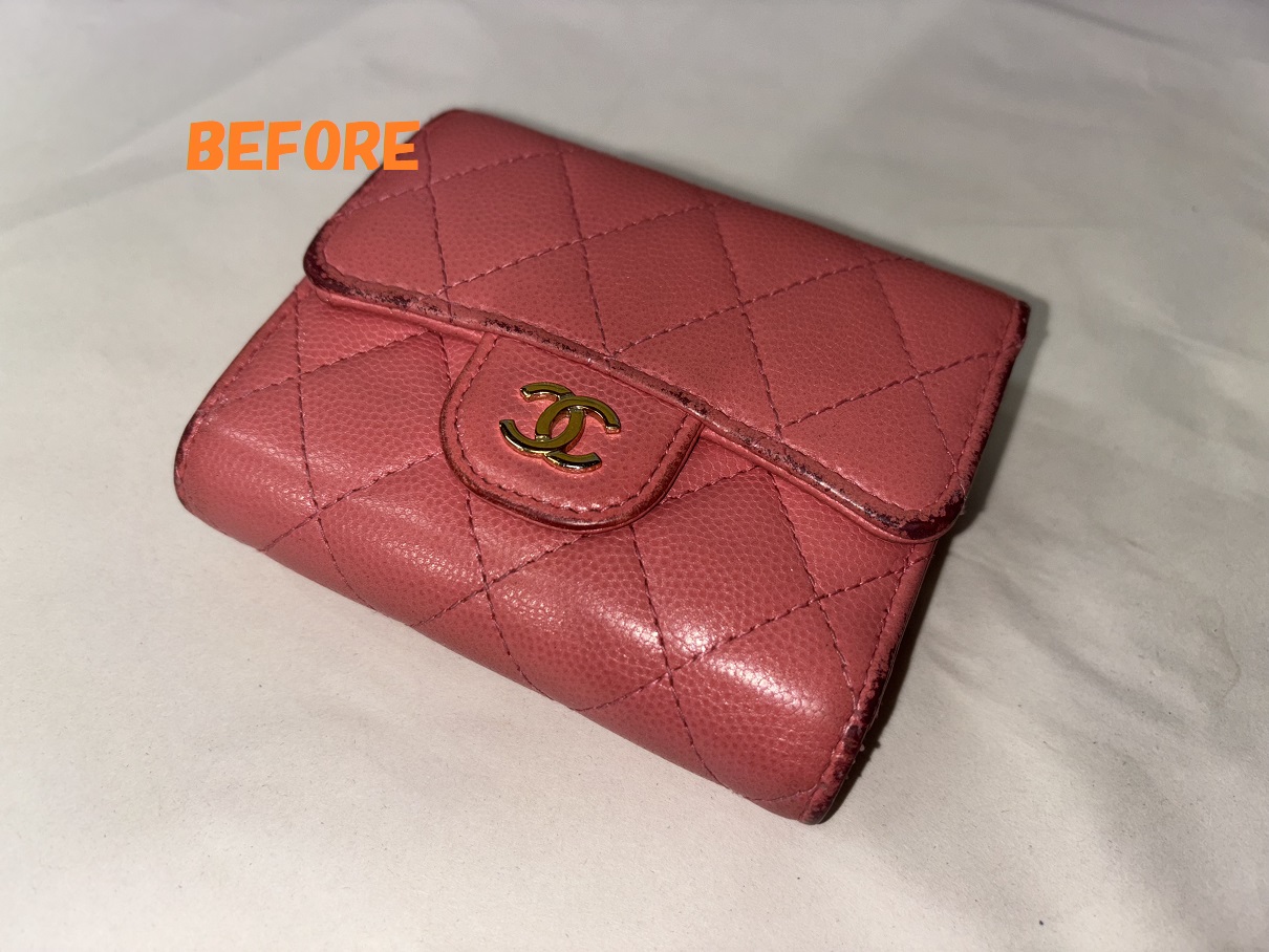 財布修理 CHANELシャネル キャビアスキン 折りたたみ財布 角スレ 黒ずみ補修 染め直し