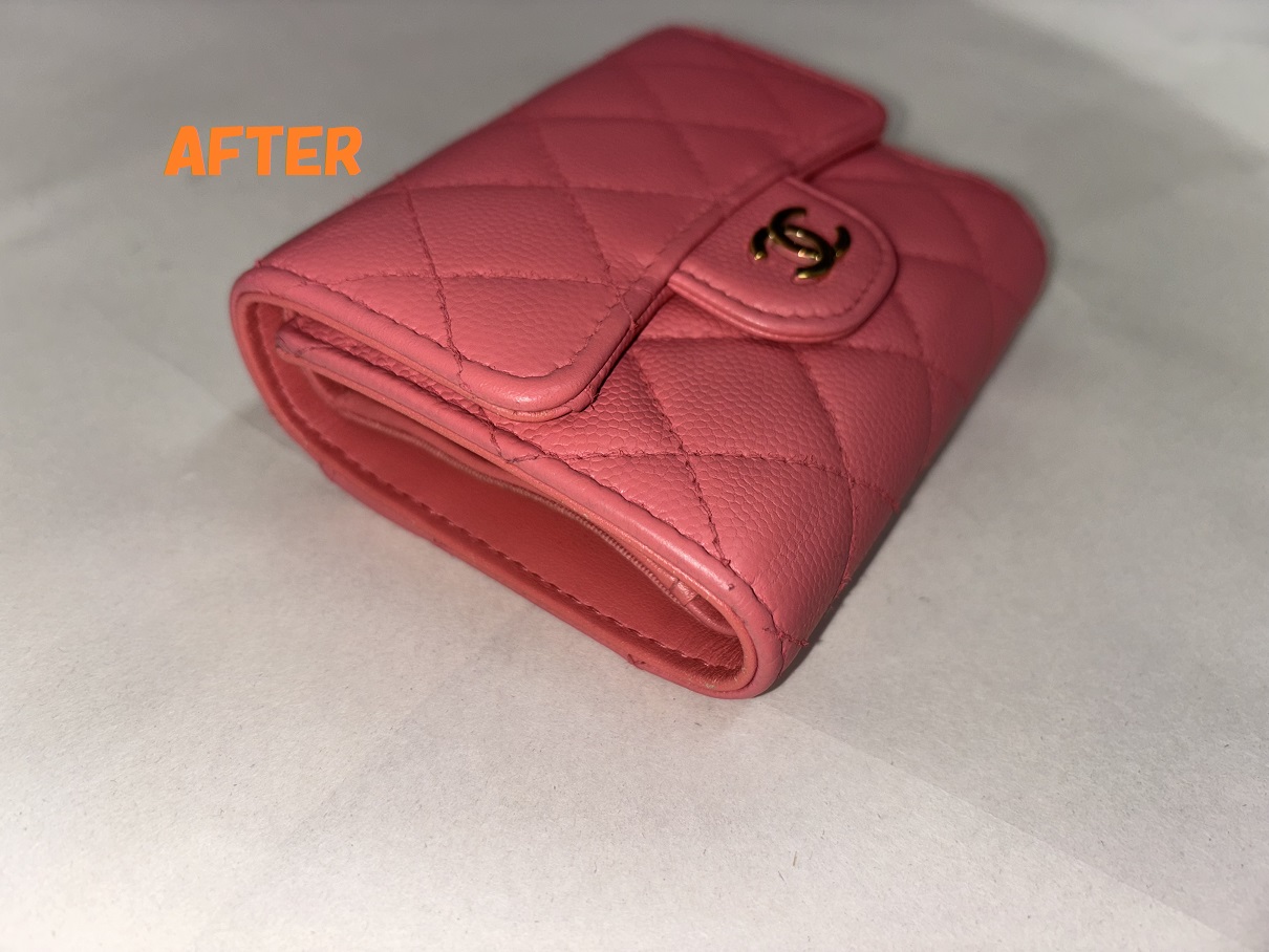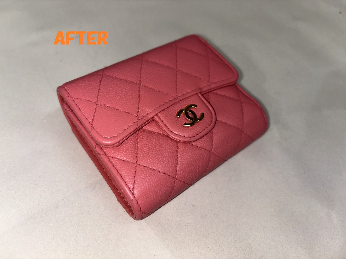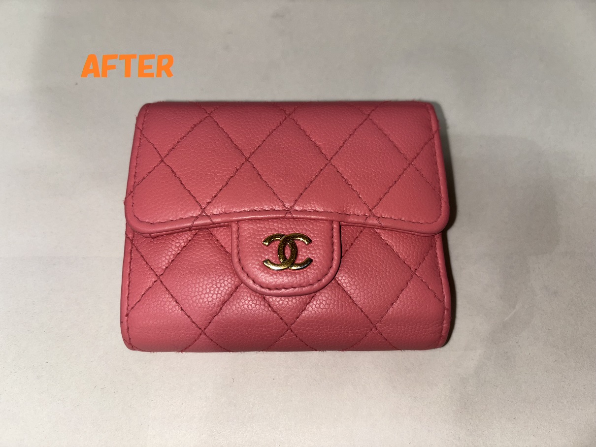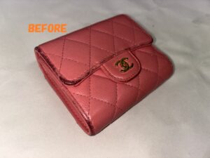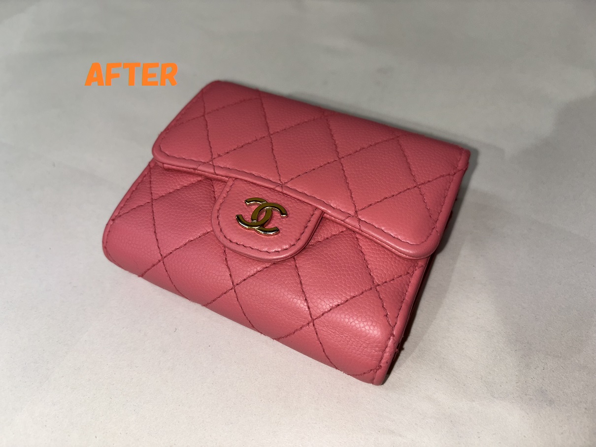 財布修理 CHANELシャネル キャビアスキン 折りたたみ財布 角スレ 黒ずみ補修 染め直し