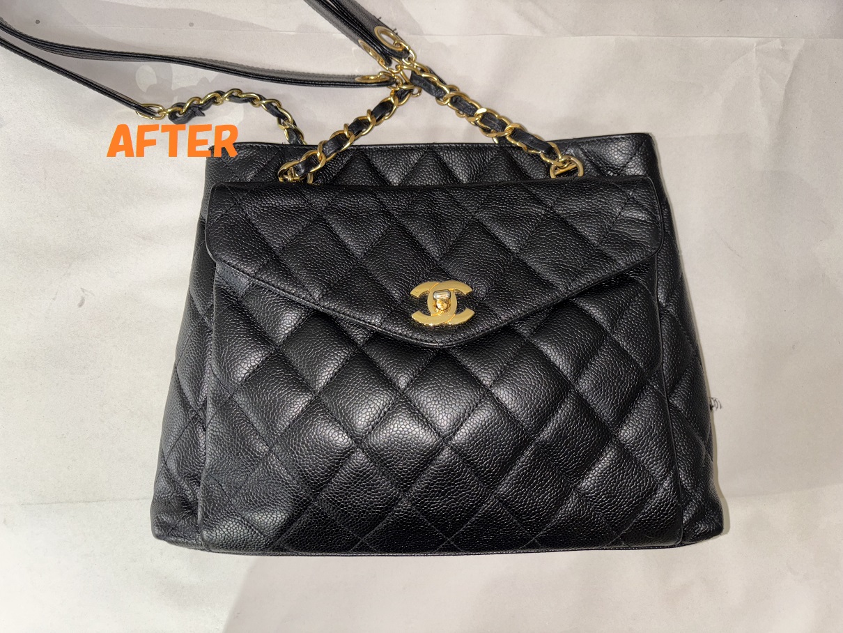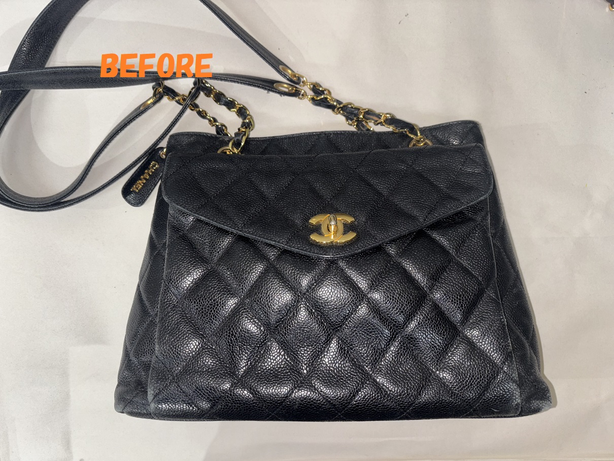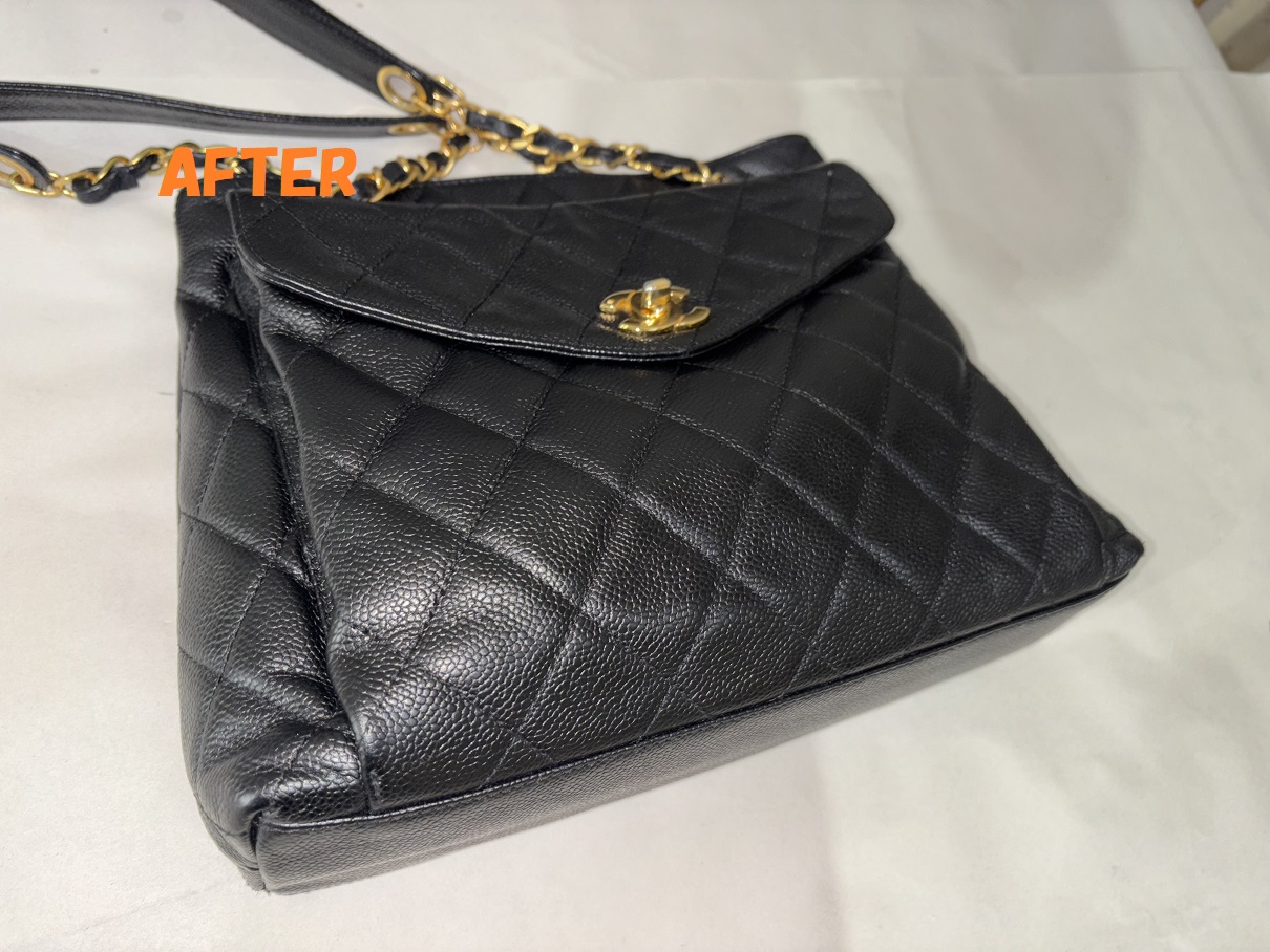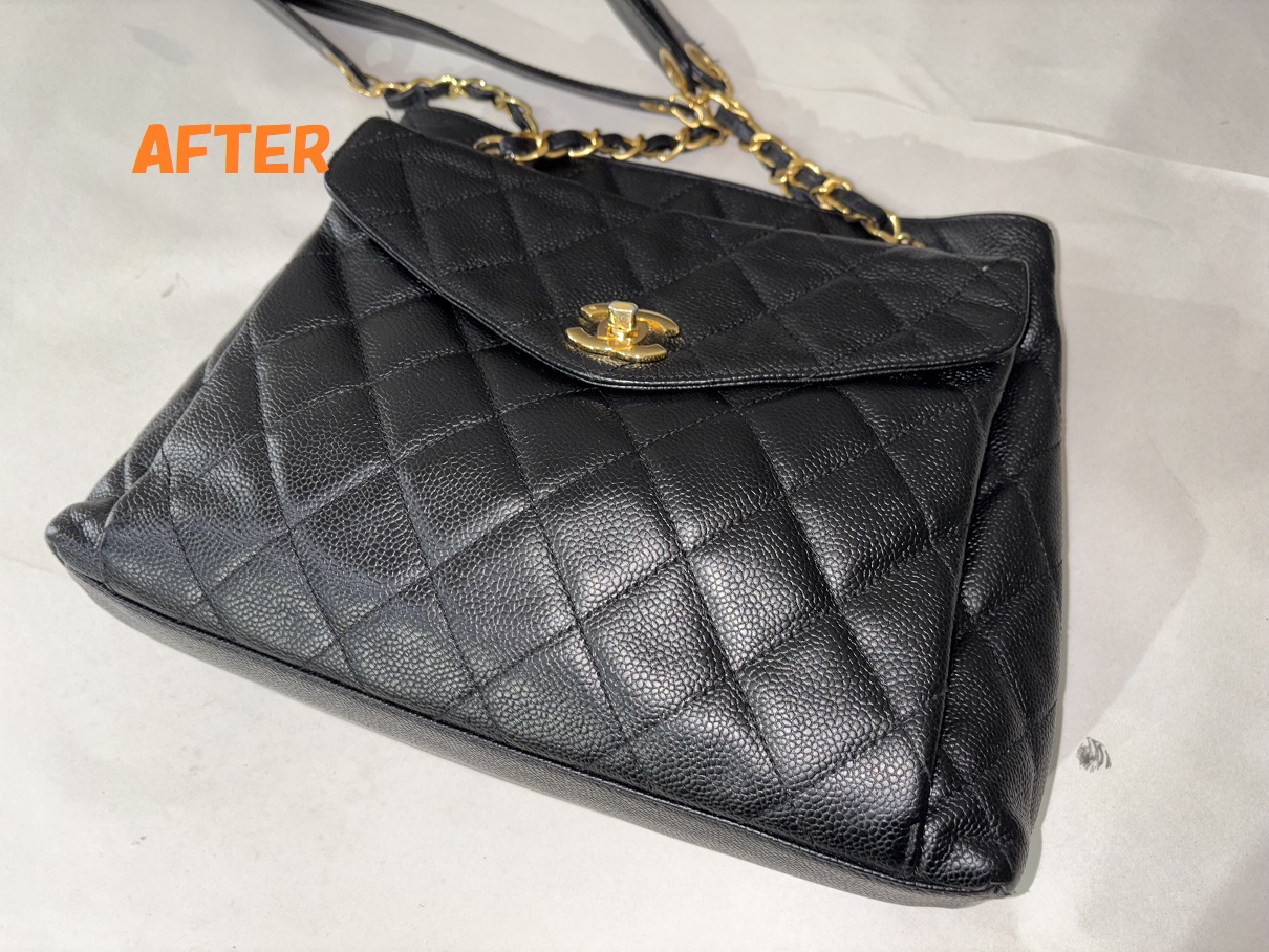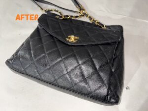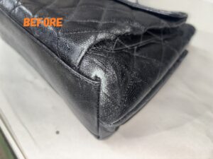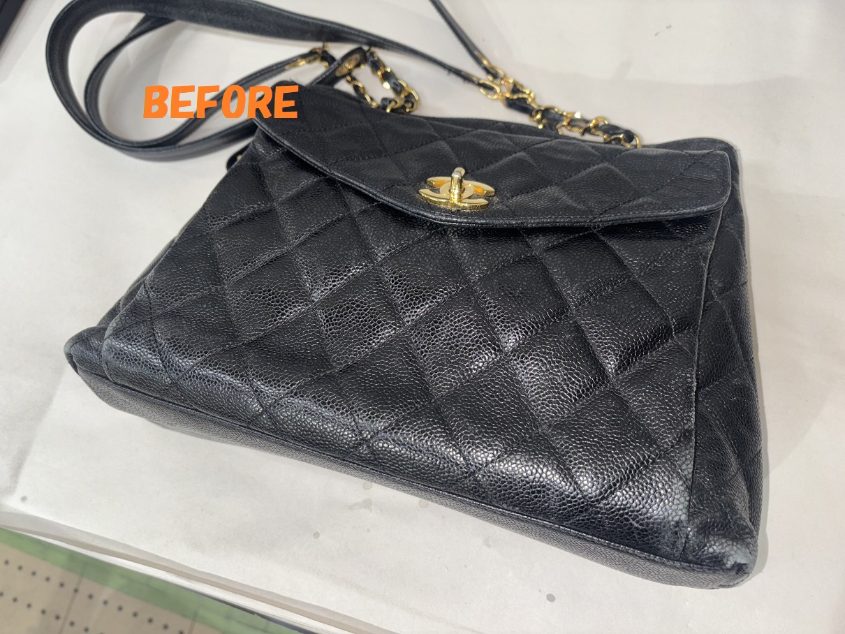 カバン修理 CHANELシャネル キャビアスキン ショルダーバッグ 角スレの補修 染め直し