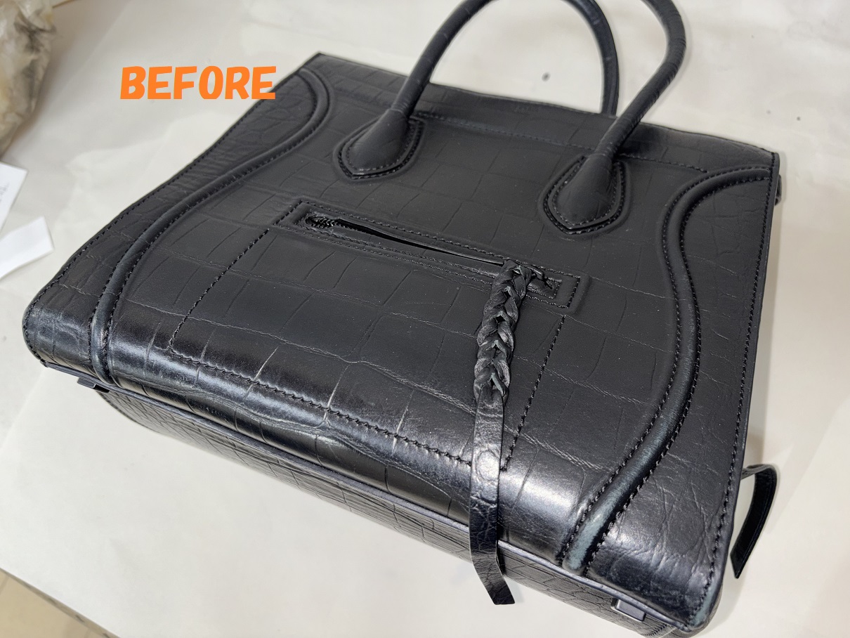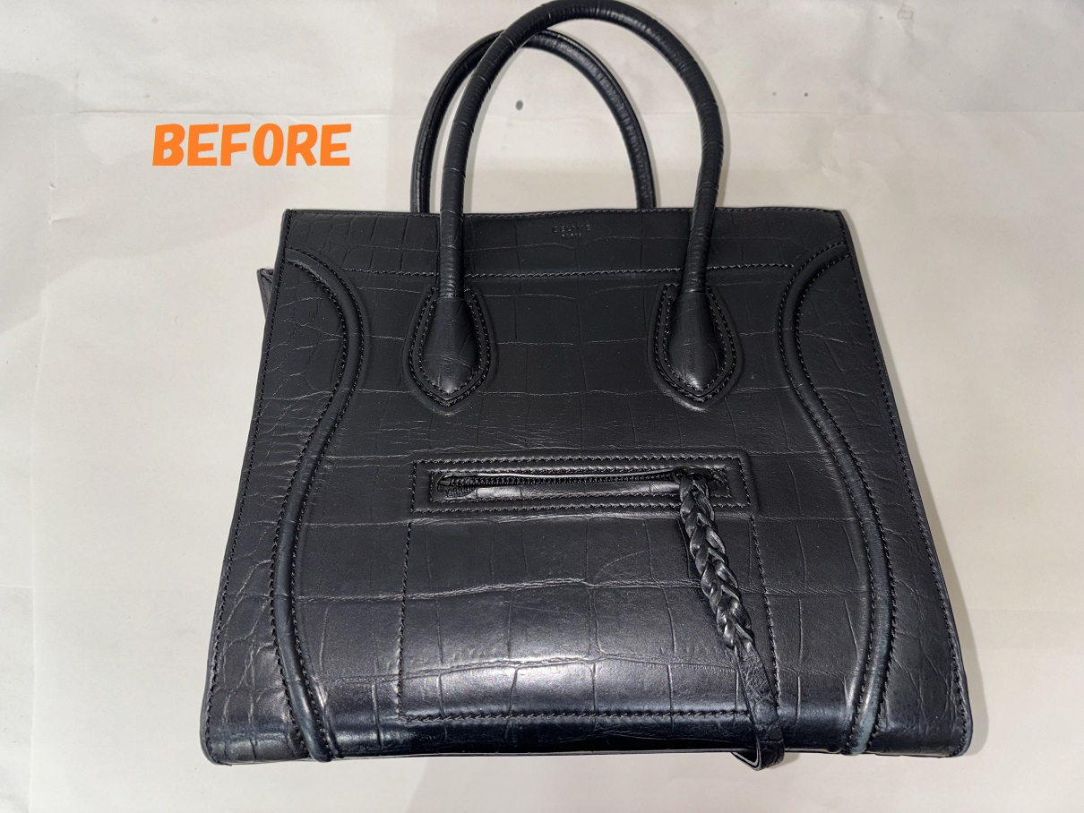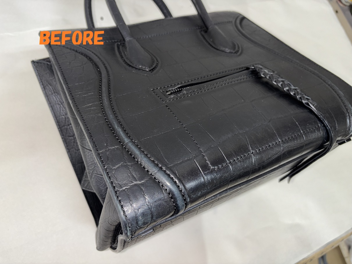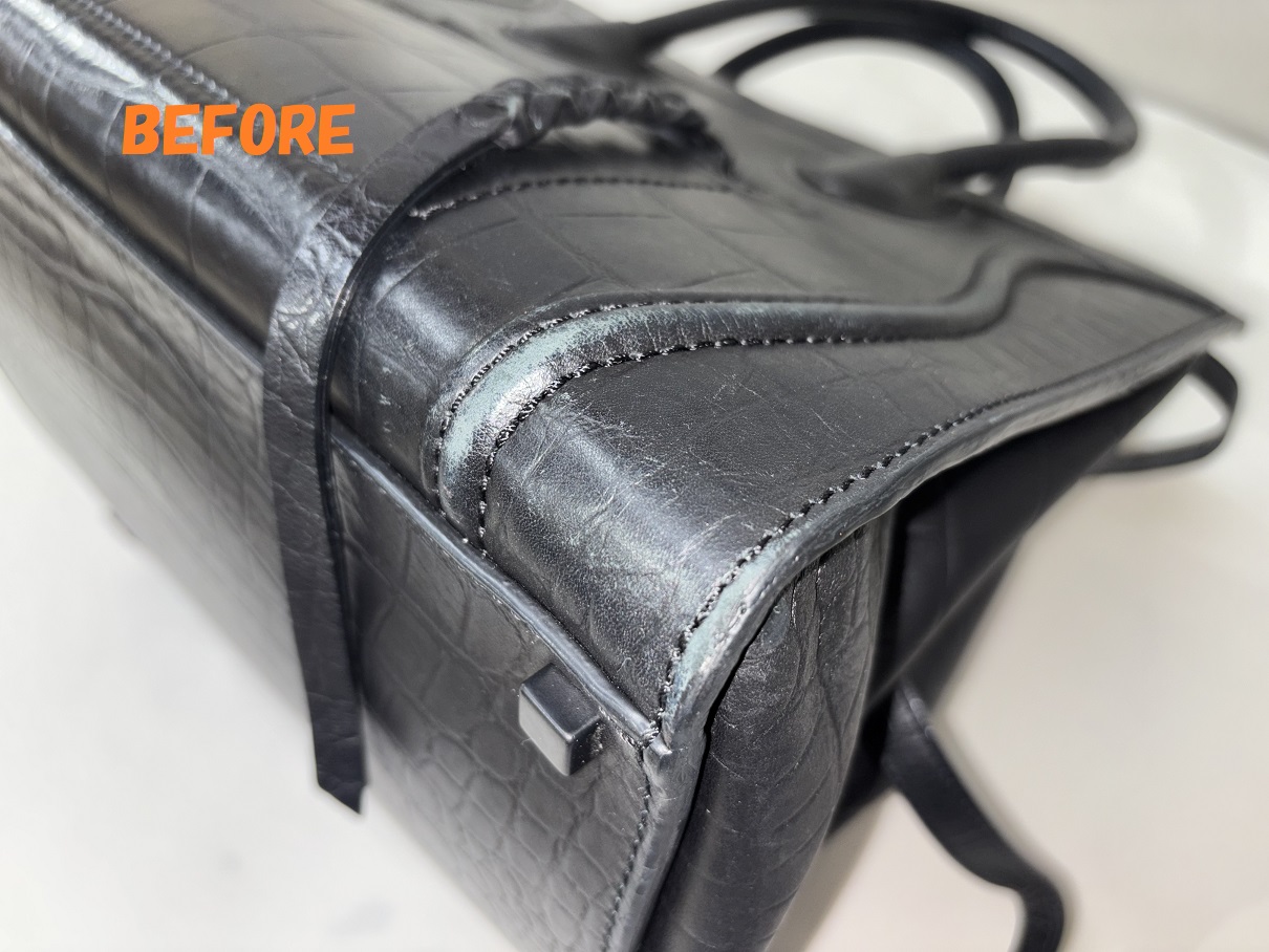 バッグ修理 CELINEセリーヌ ラゲージ 角スレの補修 色あせ補修 染め直し