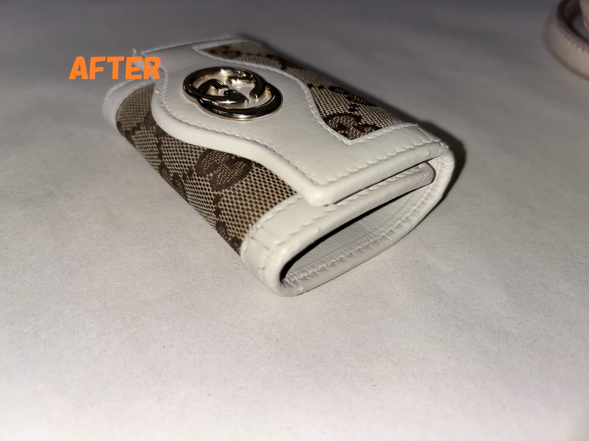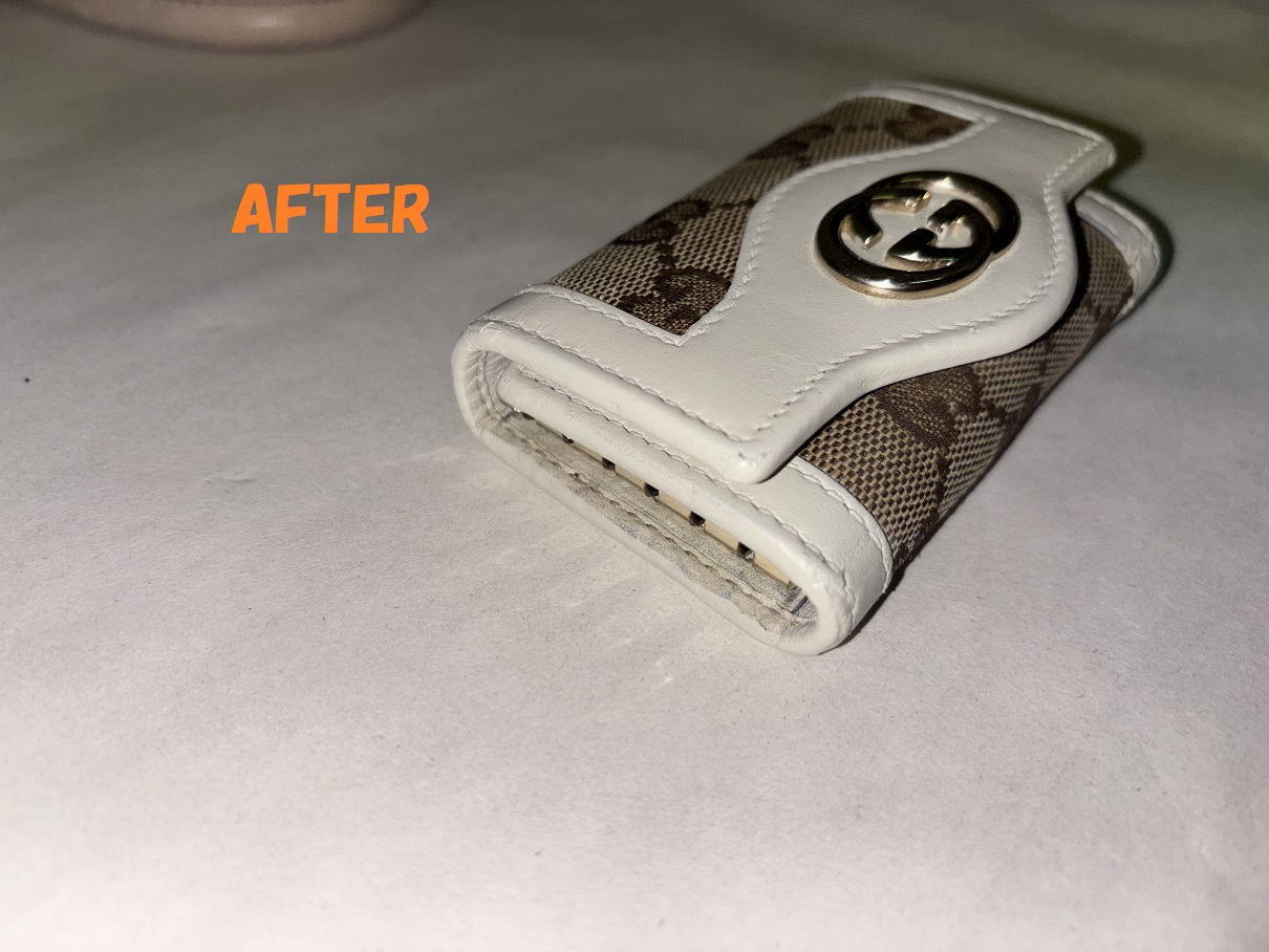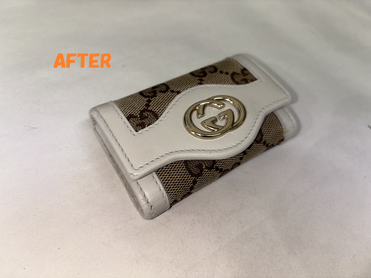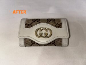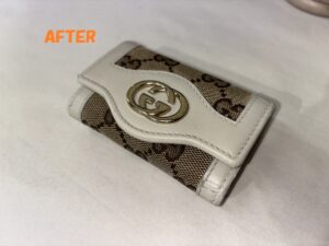 革小物修理 GUCCIグッチ キーケース 角スレ、革破れ補修 黒ずみ 染め直し