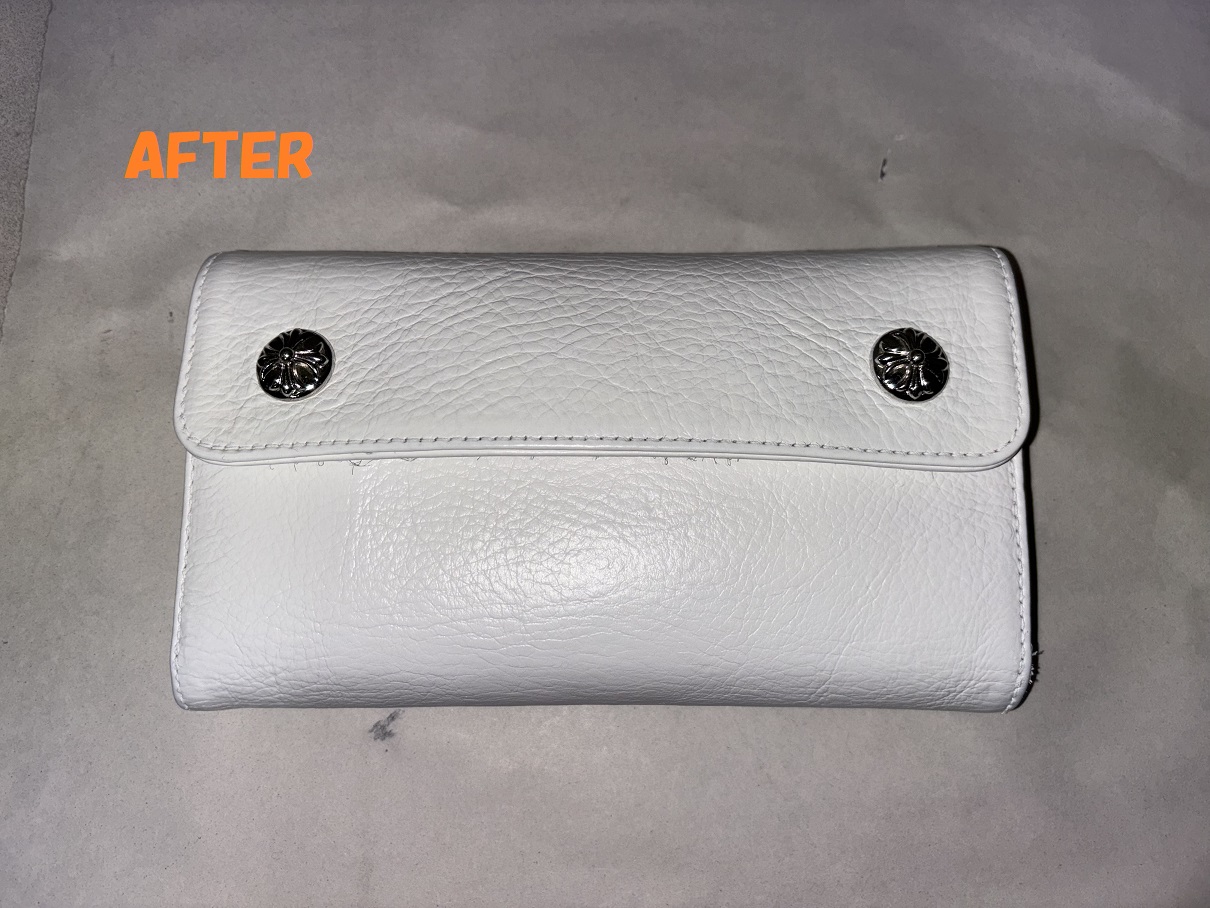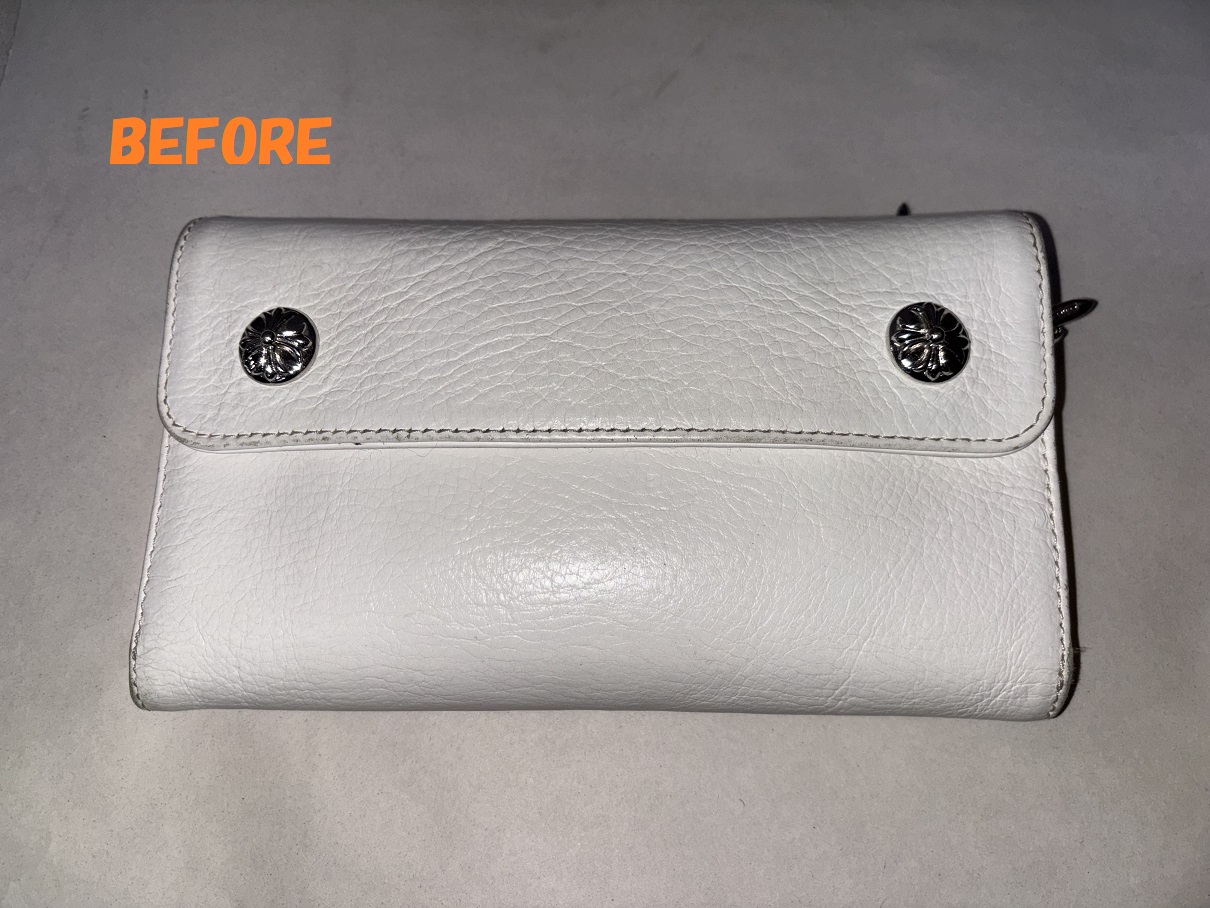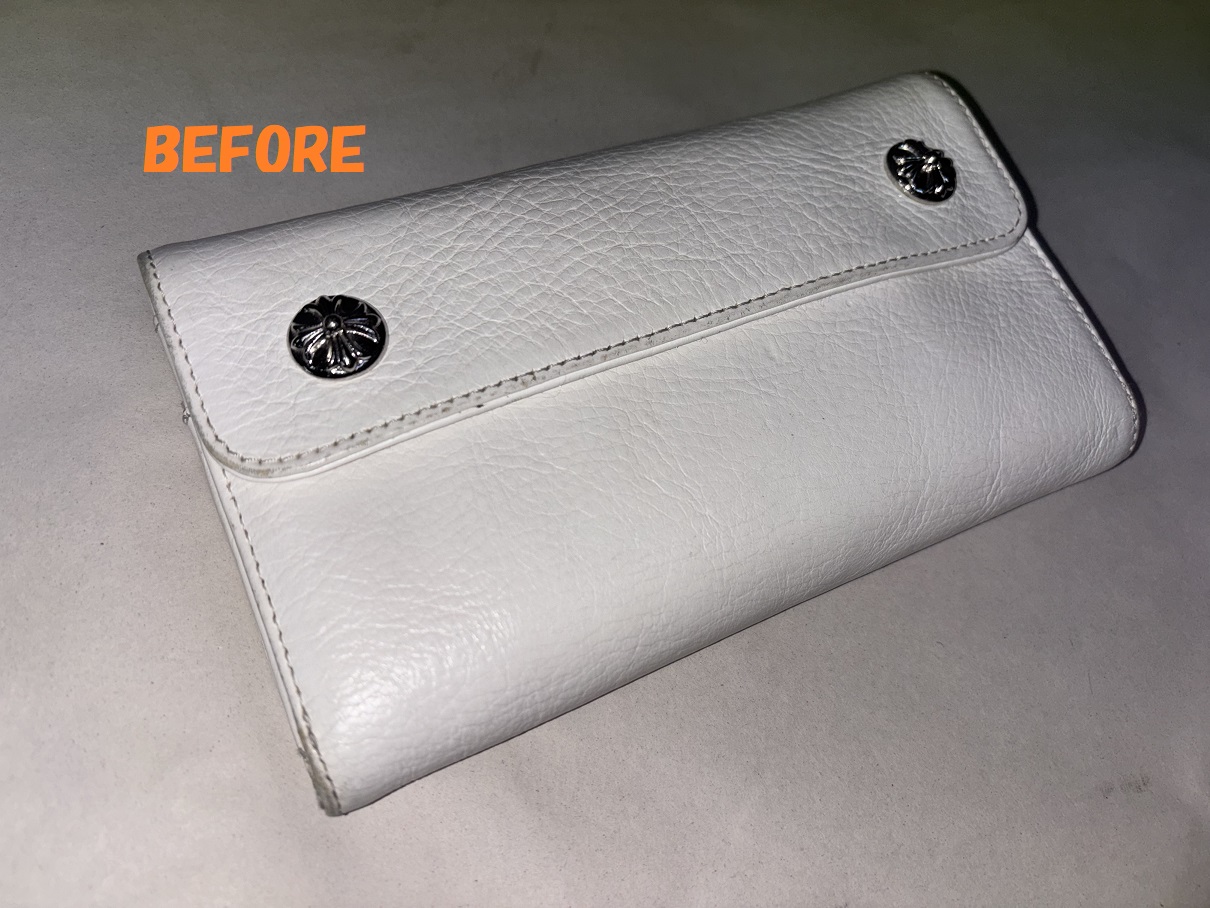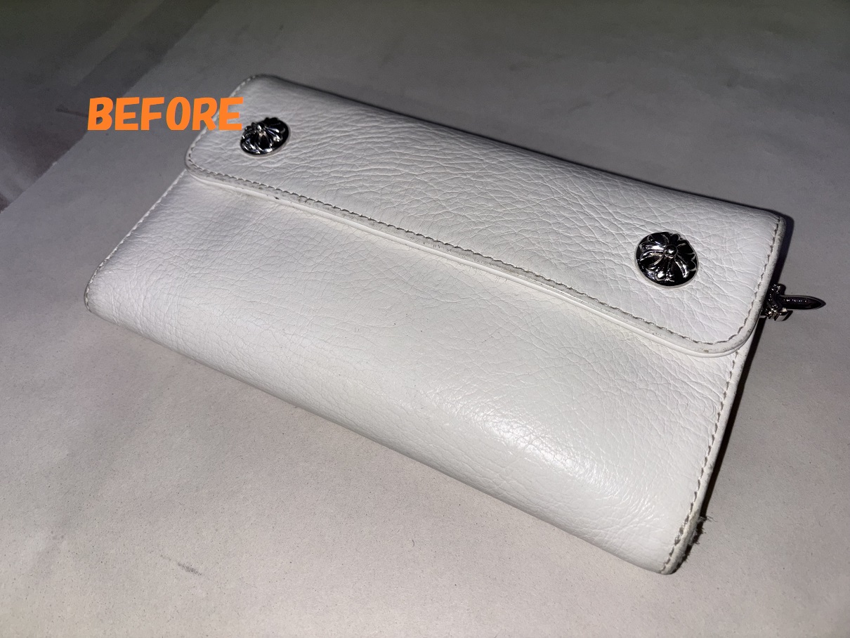 クロムハーツの白の長財布の汚れ、黒ずみの除去、染め直しのご依頼を頂きましたので、ご紹介させていただきます(*^-^*)