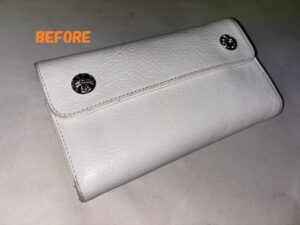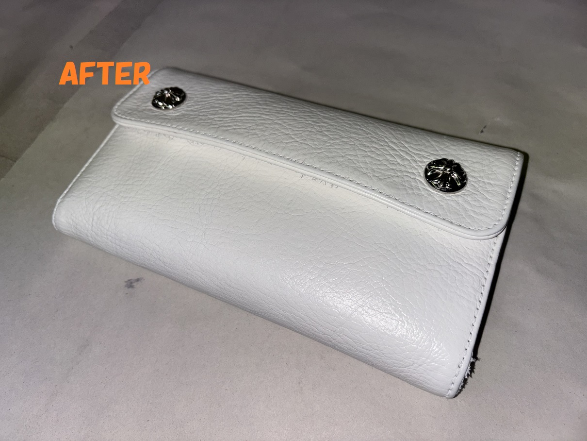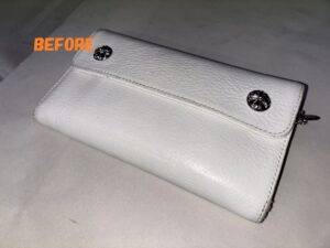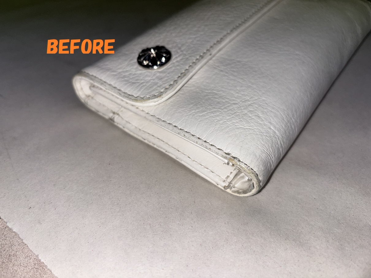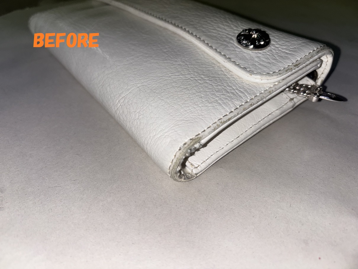財布修理 クロムハーツ 長財布 白 角スレ お色の剥がれの補修 染め直し