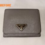 財布修理 PRADAプラダ 折りたたみ財布 サフィアーノレザー 角スレの補修 染め直し