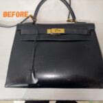 カバン修理 HERMESエルメス ケリーバッグ 角スレ補修 ひっかき傷の補修 染め直し